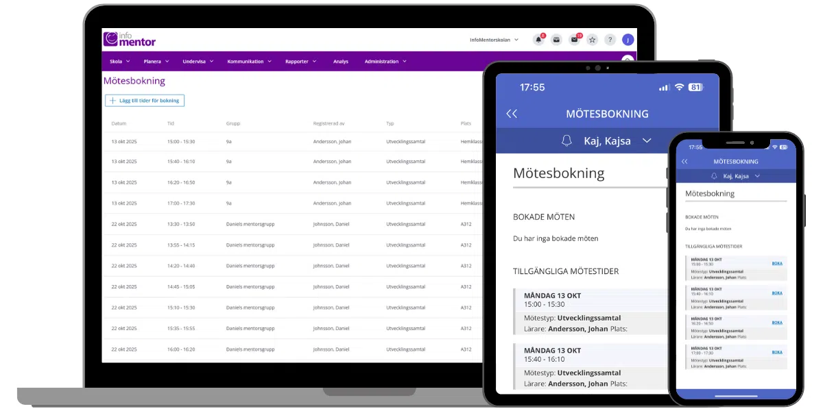 Den nya lösningen är utvecklad med flexibilitet i fokus och kan användas för många olika typer av möten, inte bara utvecklingssamtal. Det ger verksamheten större frihet att planera och kommunicera på ett sätt som passar just era behov.